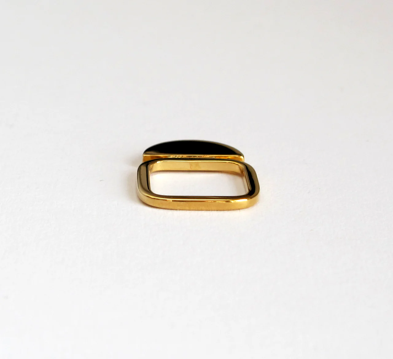Sabrina Dehoff's Sunset Ring is part of the new Universe Within Me collection that plays with motifs from our solar system andĀ meteorology. Her signature square, gold band is topped with a setting sun looks great worn solo or as part of a flat stacking set. Check out cloud and mountain designs for ideas.