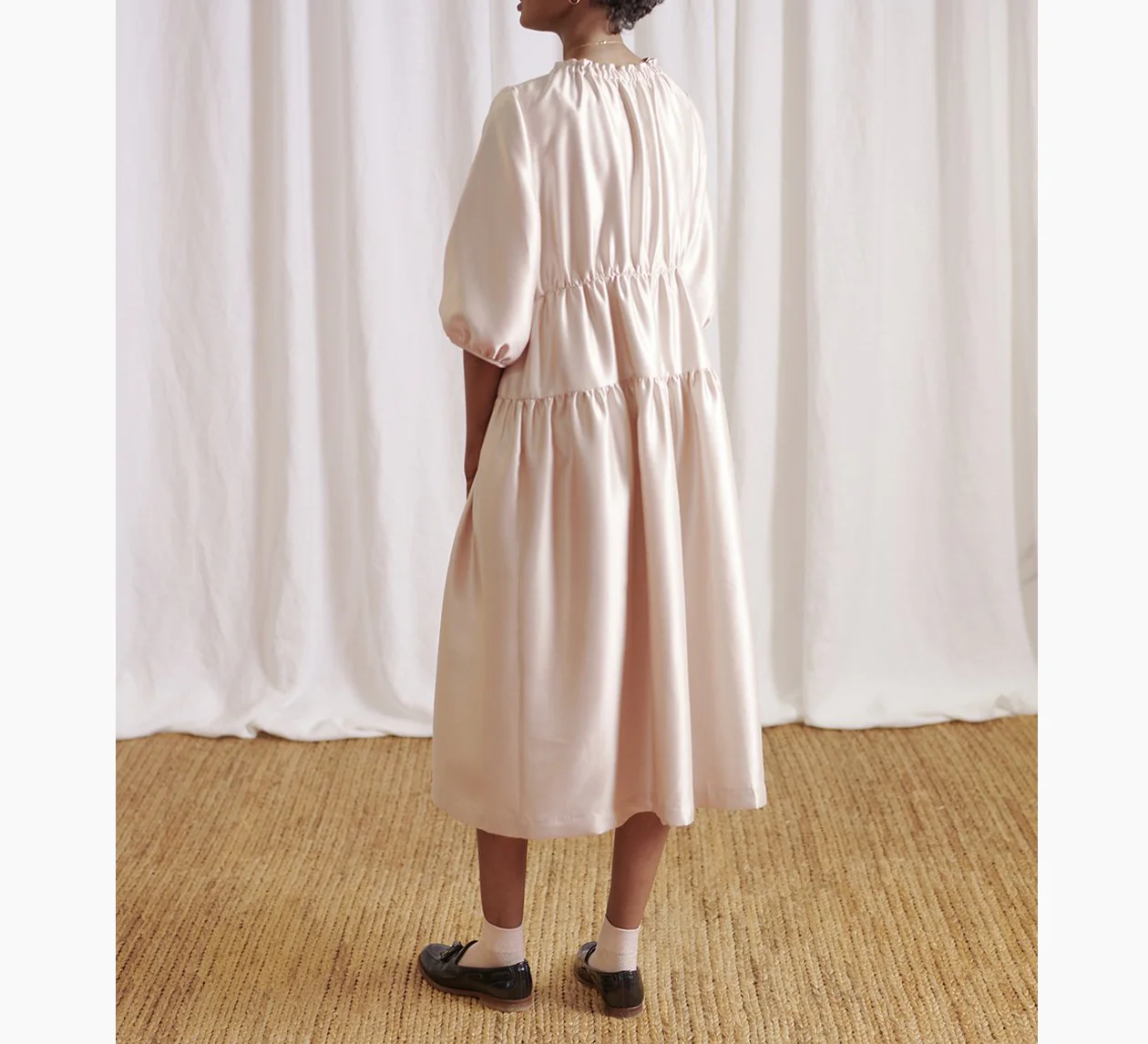 The Seasons of Love dress is a beautifulĀ design, with a gathered neckline and waist cut in ballet pink silk.